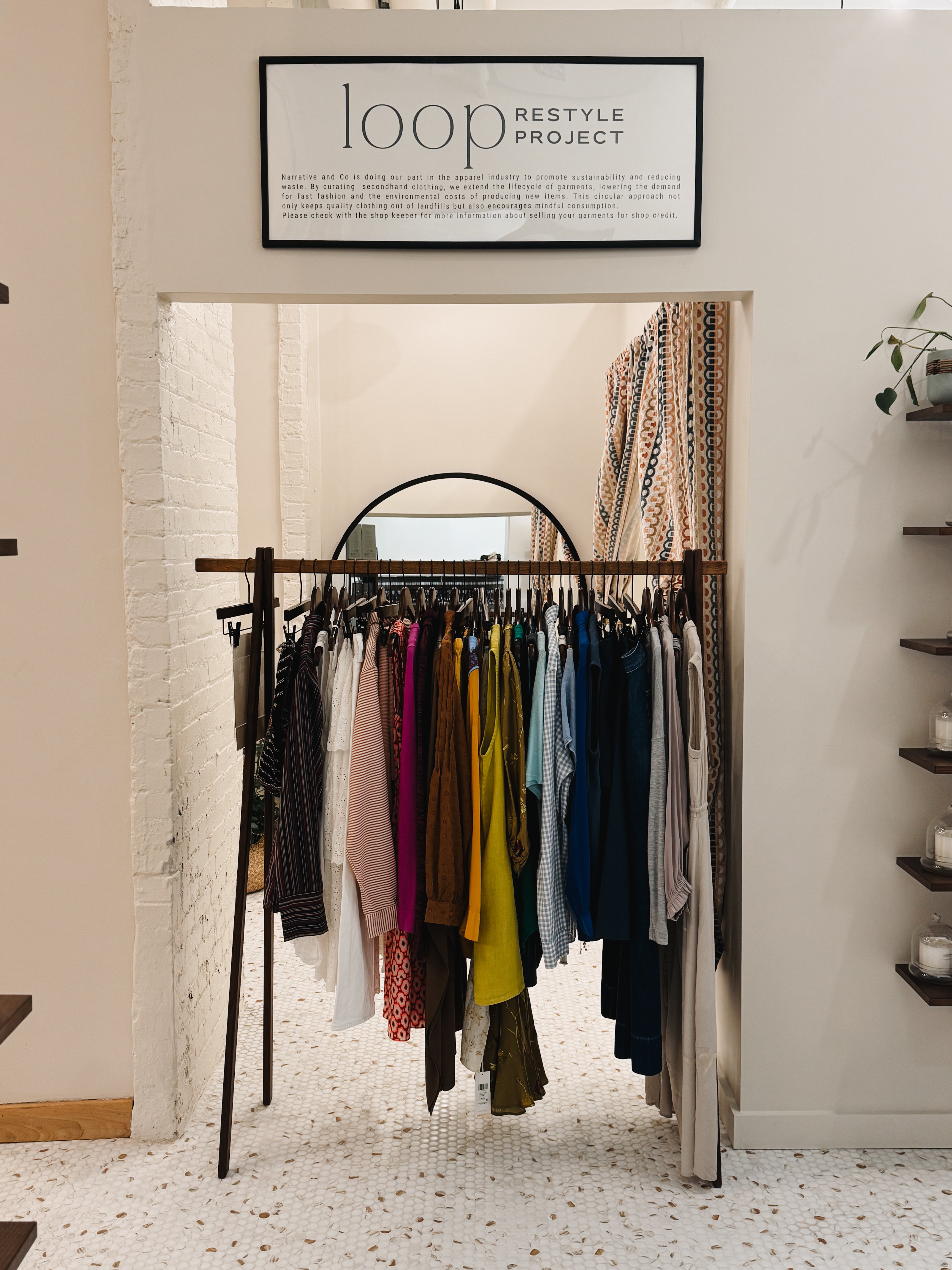 Garments we love for Loop include previous styles from companies we currently source for Narrative, in addition to pieces from brands we admire for their quality construction and strong company standards. Pieces that fall into this category are usually purchased from elevated women’s specialty shops or online department stores like Anthropologie, Nordstom, or Saks.