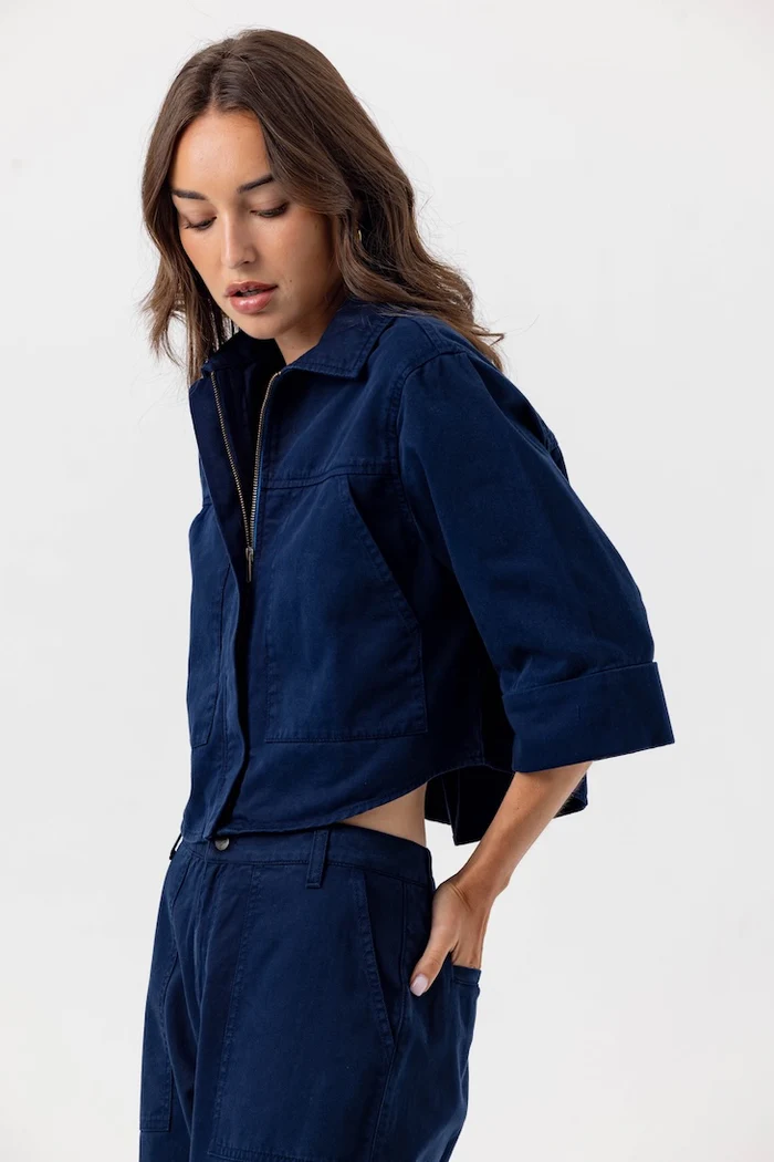 The Annora is a short, boxy-style jacket crafted in a garment-washed twill.