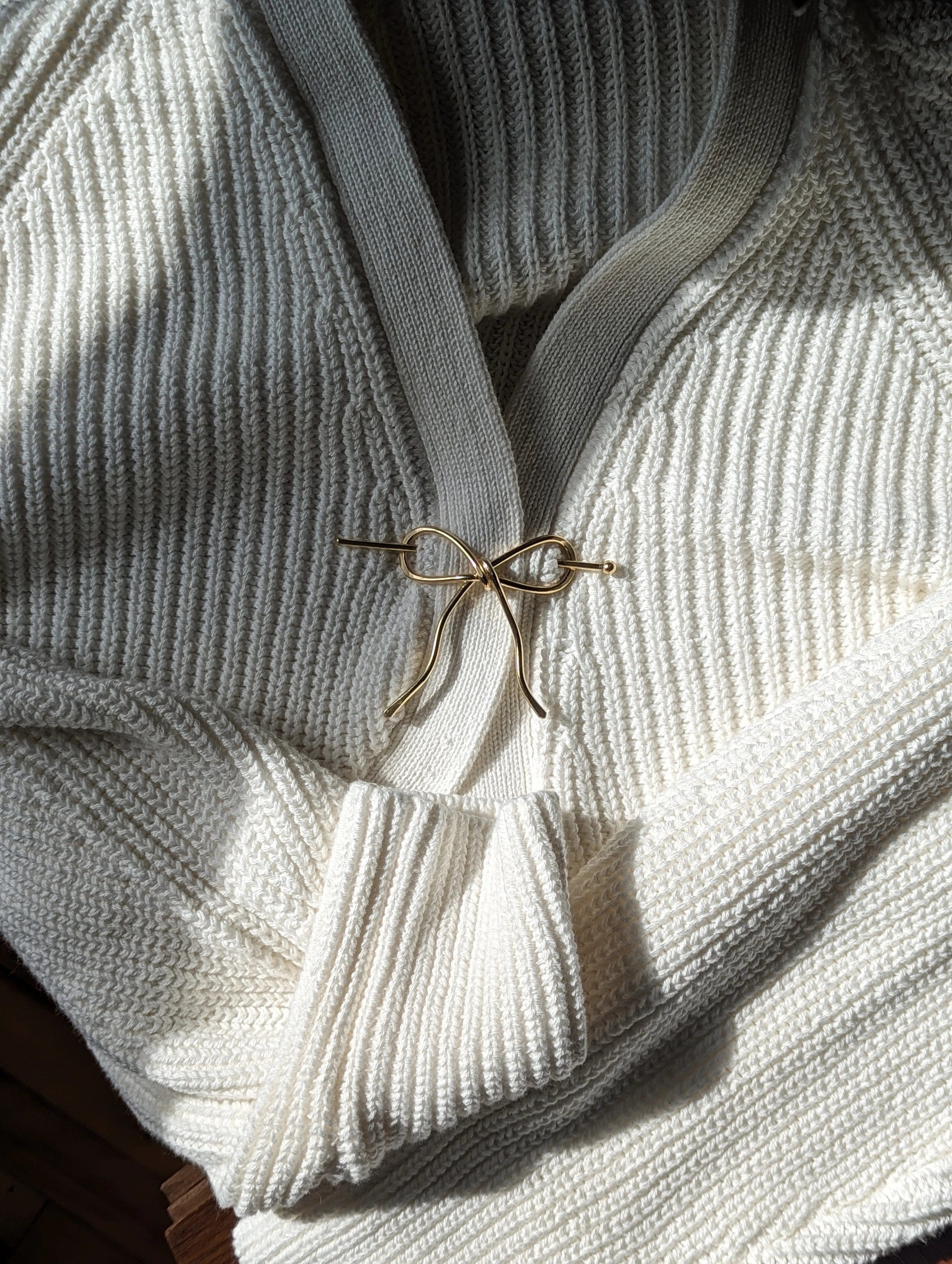 Slight hammered textured on each edge of the bow and the paddle shaped tail ends.