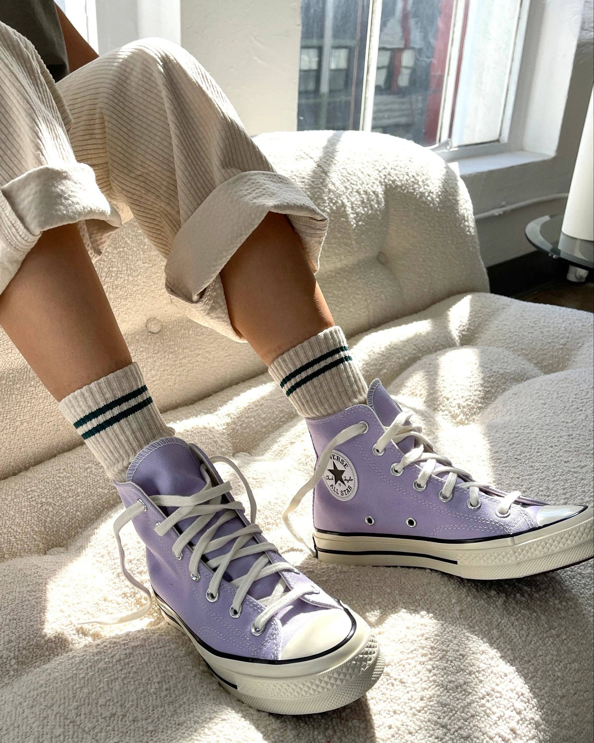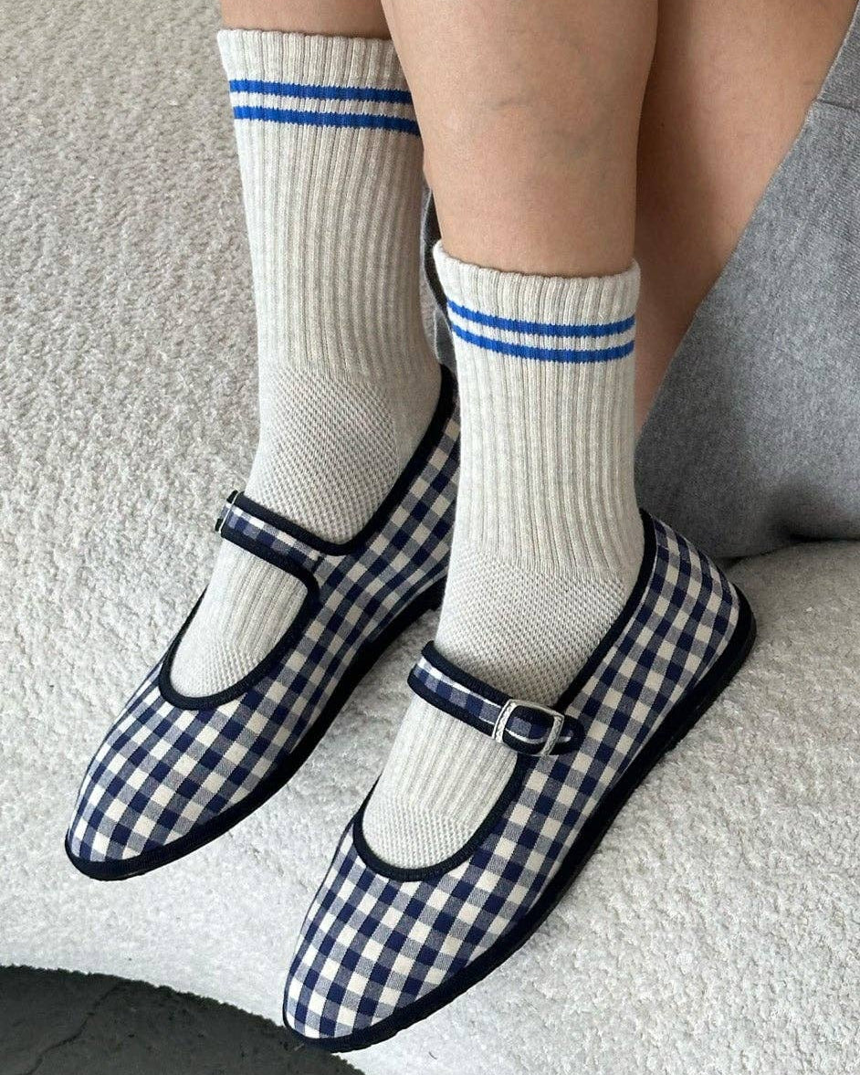 The Boyfriend Sock is one of our signature styles and a year round bestseller. Slightly longer than a classic crew and has a contrast double stripe.