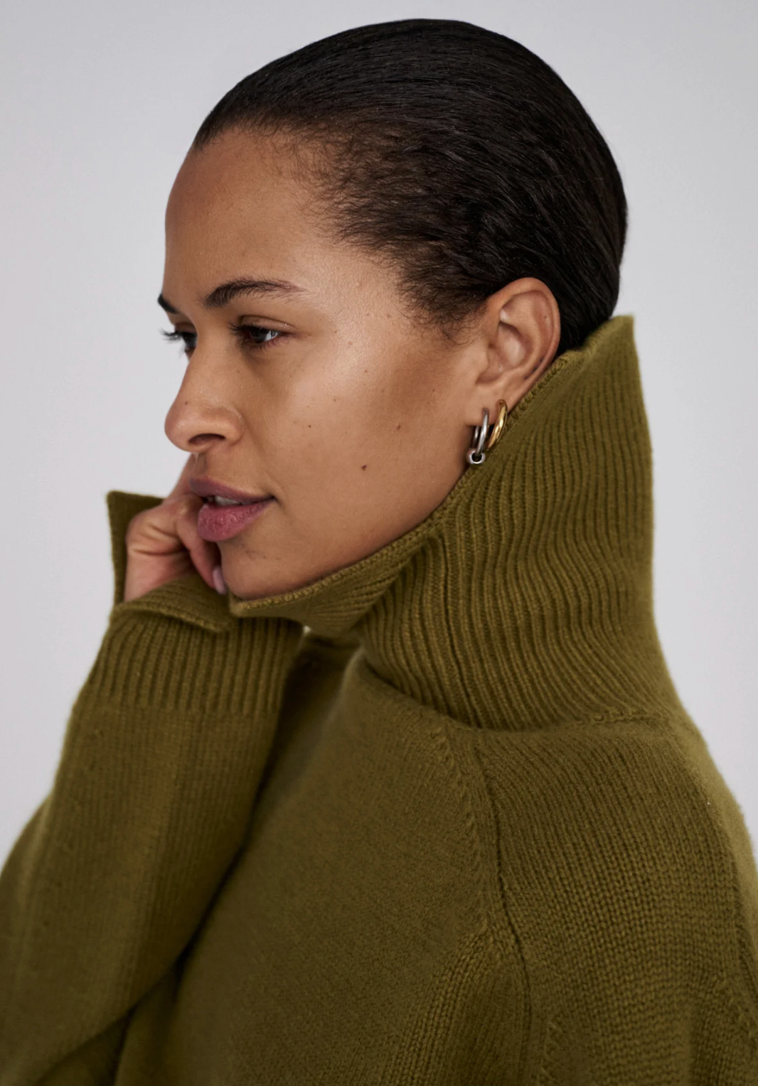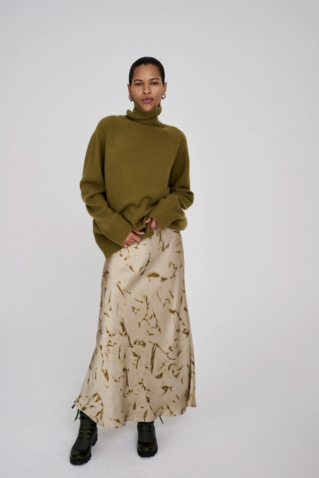 Pure wool roll neck sweater I Fern green