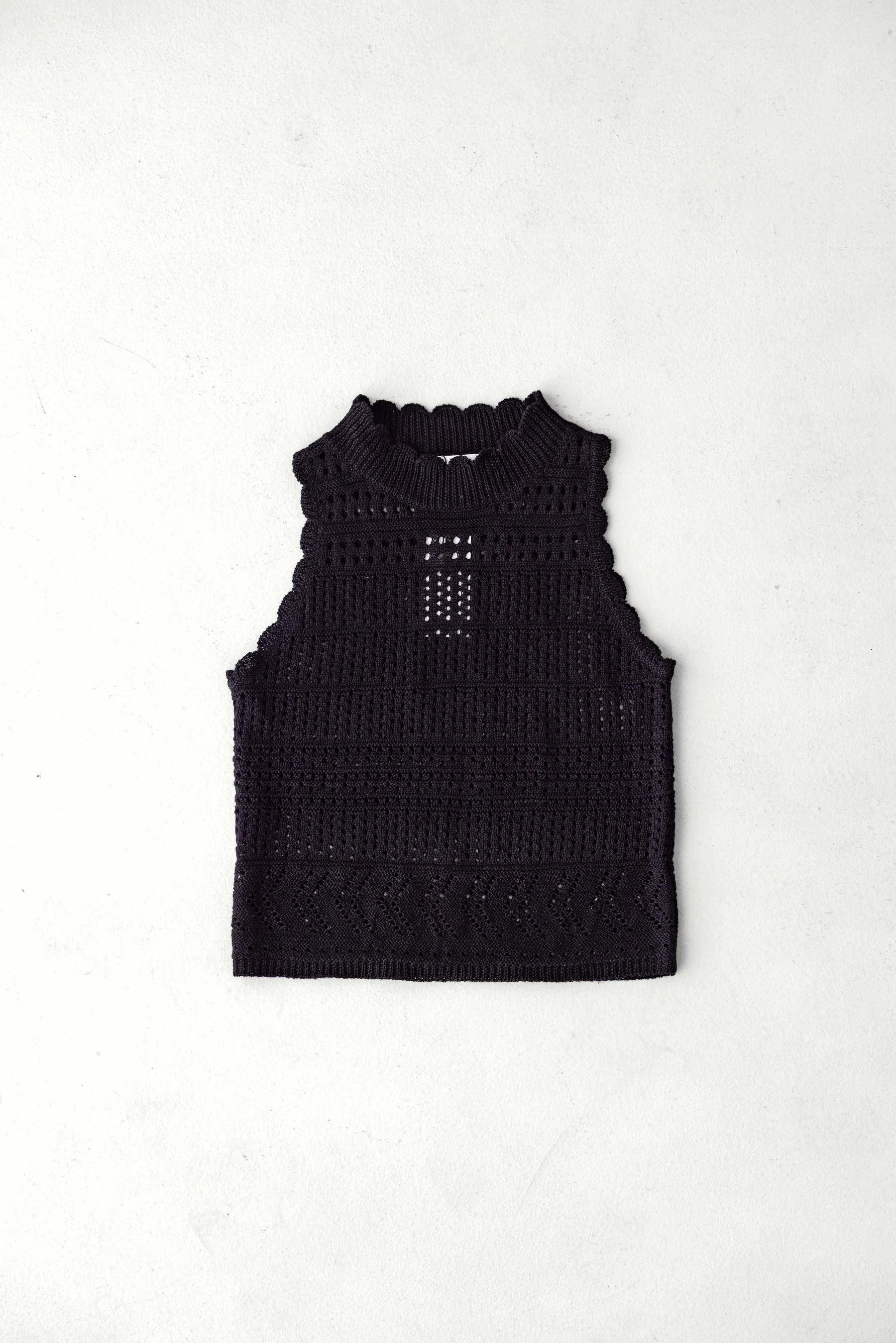 Designed with a high neckline and delicate scalloped edges.