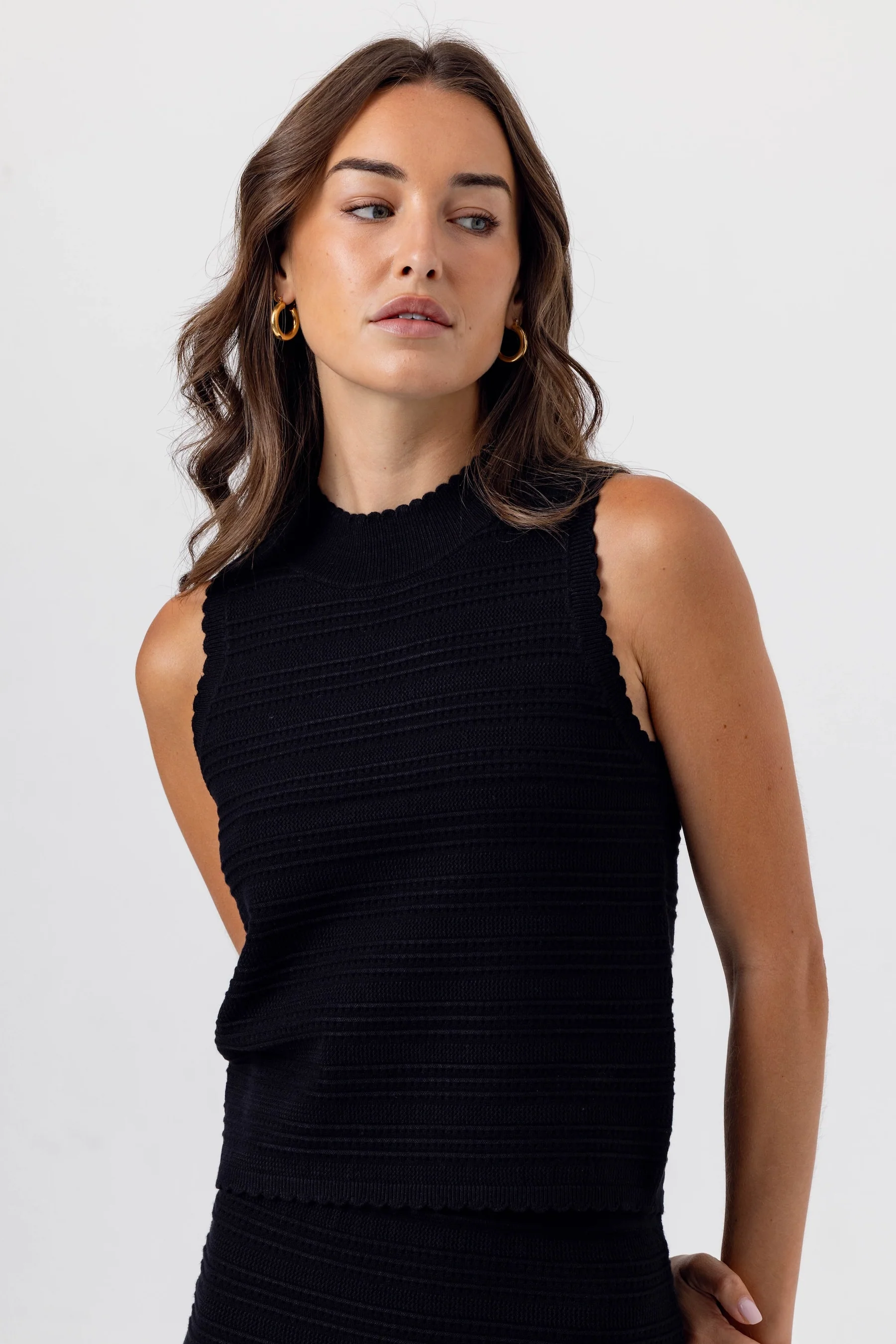 A customer favorite, the Crewe Tank is refreshed in a delicate pointelle stitch for a refined finish; a feminine take on the muscle tank.