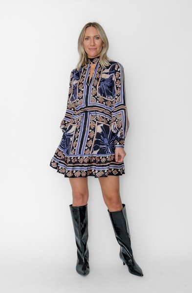 A lightweight, silky, viscose mini. Pair with boots or sneaks in the fall/winter, sandals in the spring/summer.
