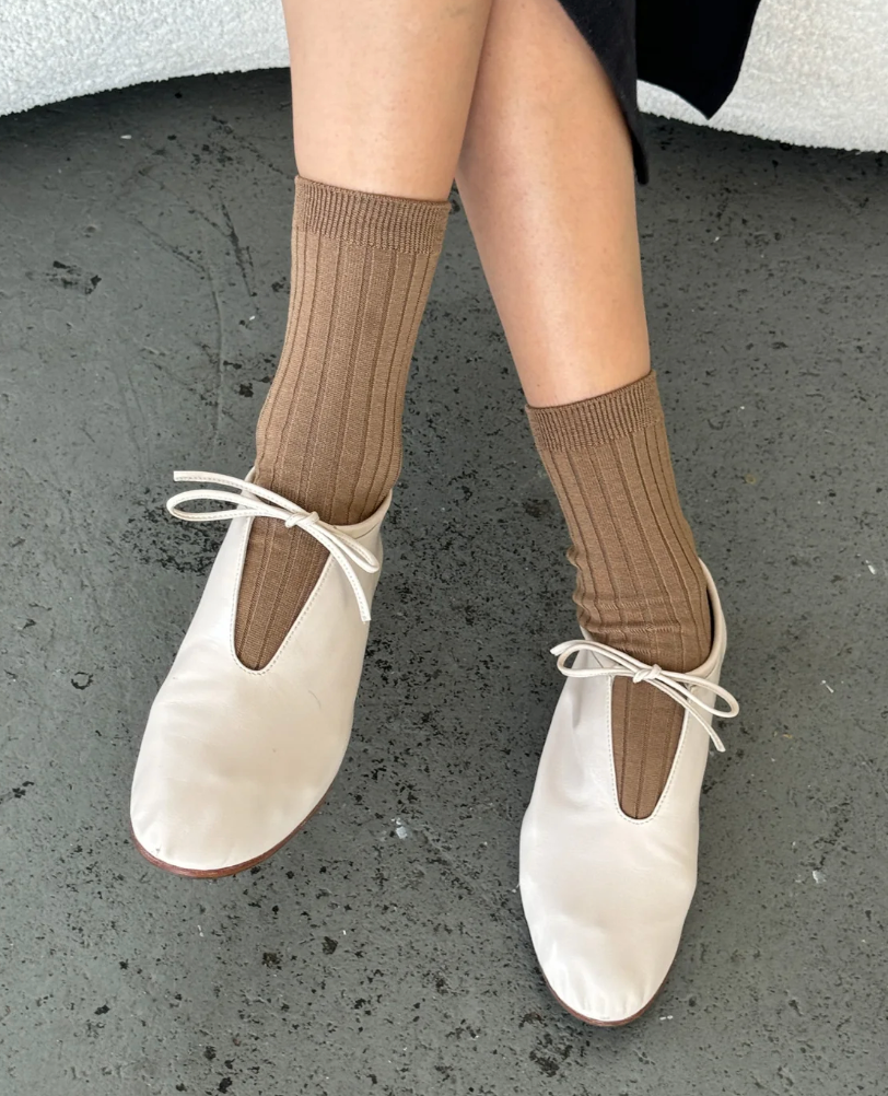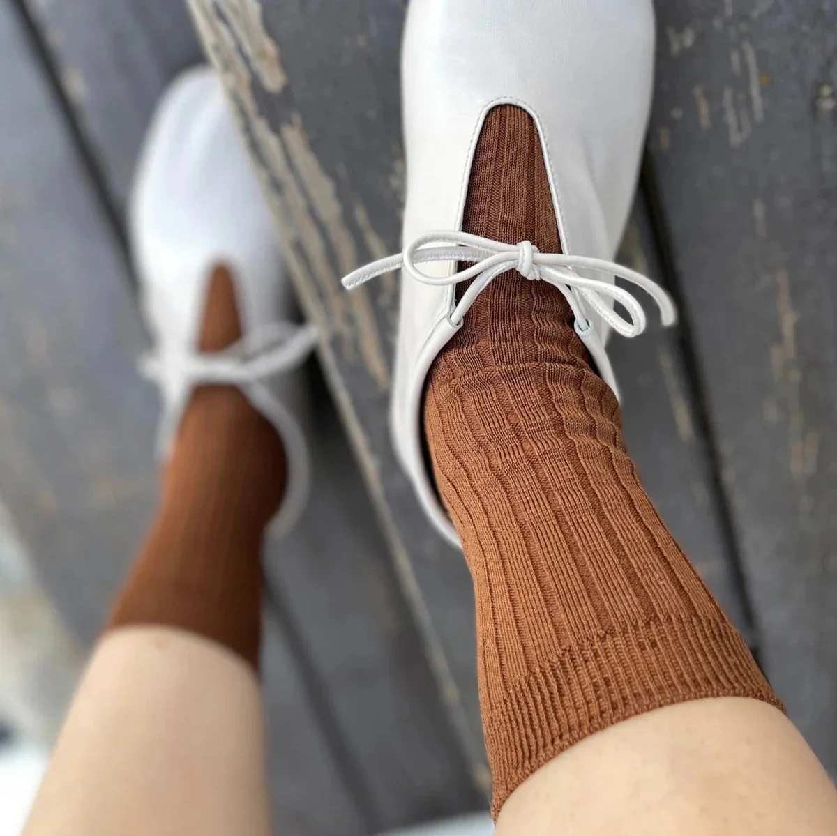 The original sock that started it all! Her Socks check off all the boxes for the perfect all-around pair. Made of a breathable cotton-blend, they boast a silk-like sheen that elevates any look. With classic ribbed details and a quarter-crew length, they effortlessly complement any outfit.
