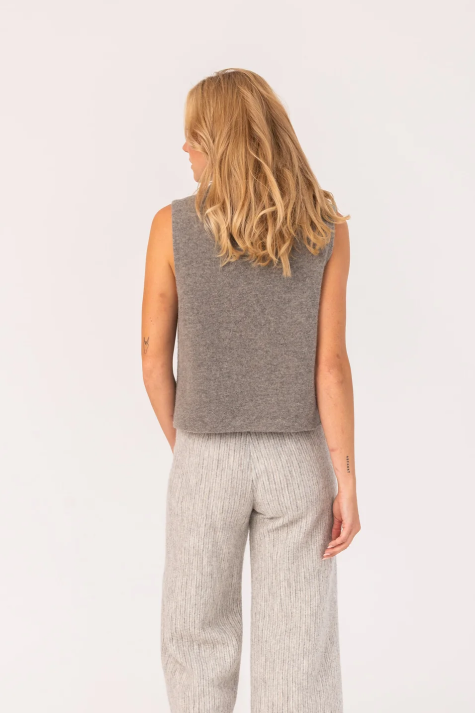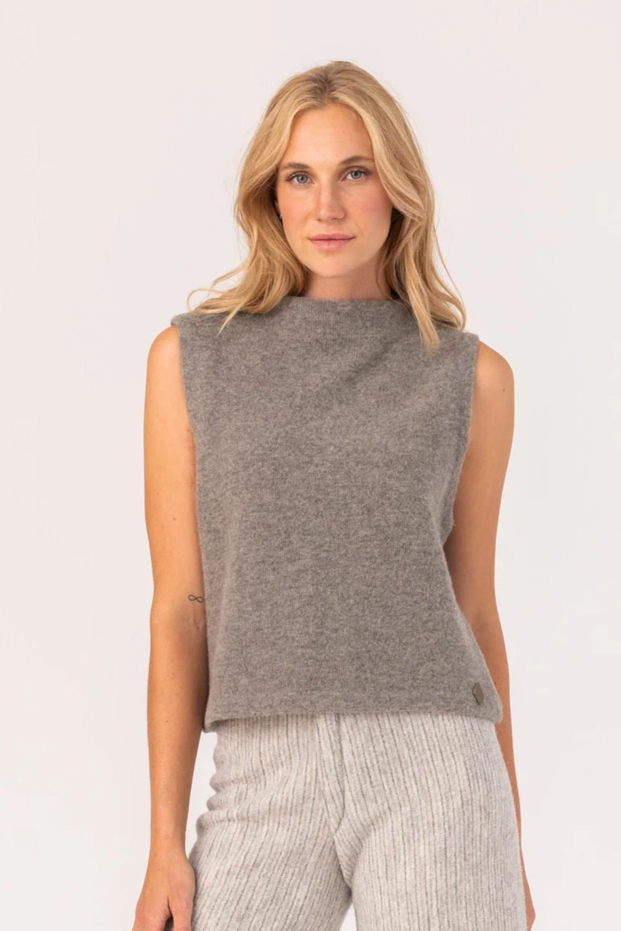 The straight-cut KARLA sweater vest with a boatneck neckline is made of temperature-regulating double-face wool (double-knitted from lamb's wool and cotton). Not only does it feel cuddly and soft, but it also looks great! The cotton is GOTS certified (Global Organic Textile Standard). The sweater is knitted and milled in Tyrol! Fits perfectly over a turtleneck or blouse!