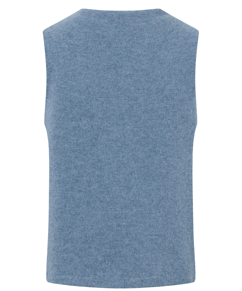 The straight-cut KARLA sweater vest with a boatneck neckline is made of temperature-regulating double-face wool (double-knitted from lamb's wool and cotton). Not only does it feel cuddly and soft, but it also looks great! The cotton is GOTS certified (Global Organic Textile Standard). The sweater is knitted and milled in Tyrol! Fits perfectly over a turtleneck or blouse!