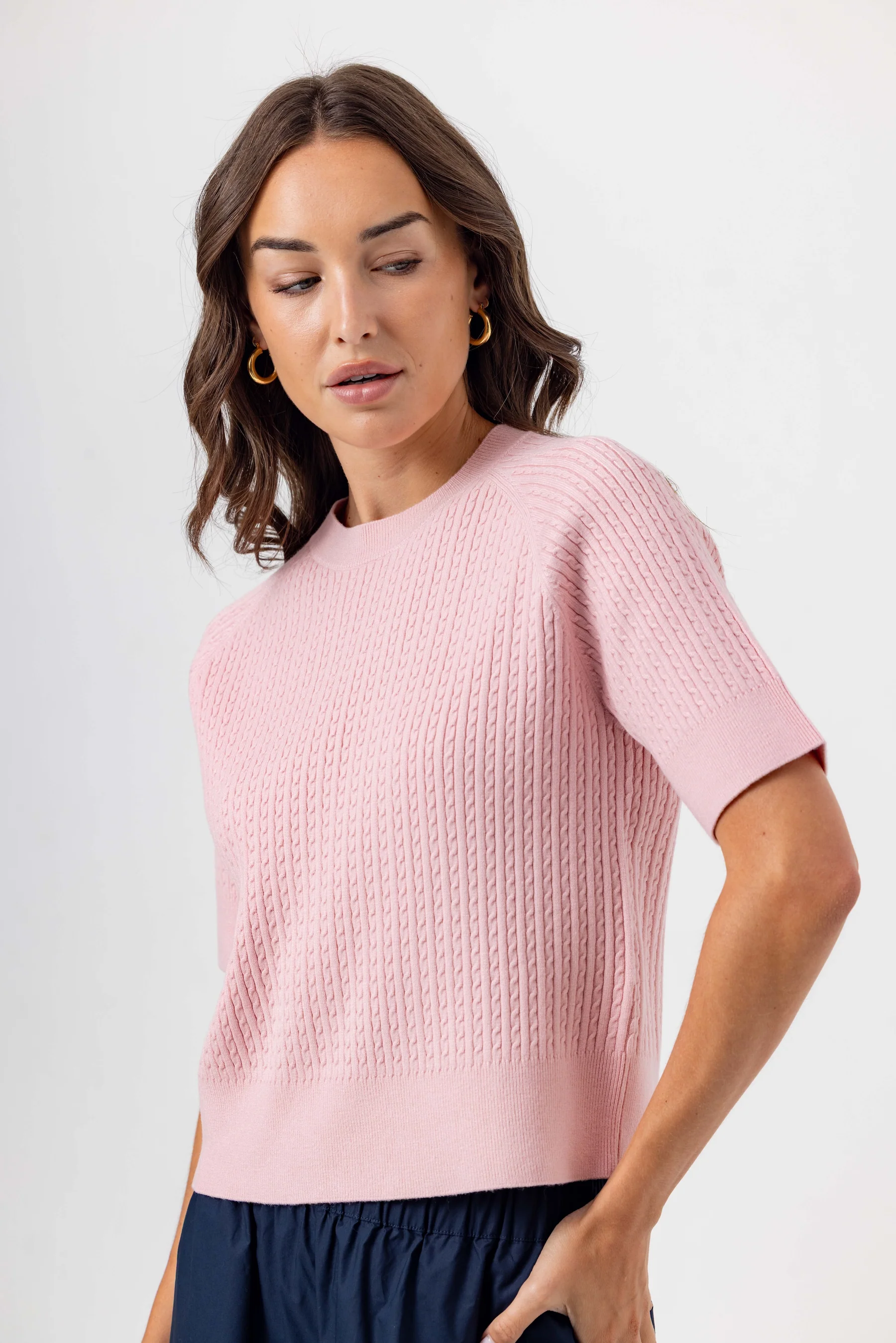 Made from our butter-soft viscose yarn, the Kendra sweater reimagines a classic silhouette with raglan short sleeve, finished with a delicate rib stitch on the sleeves, neckline, and bottom opening.