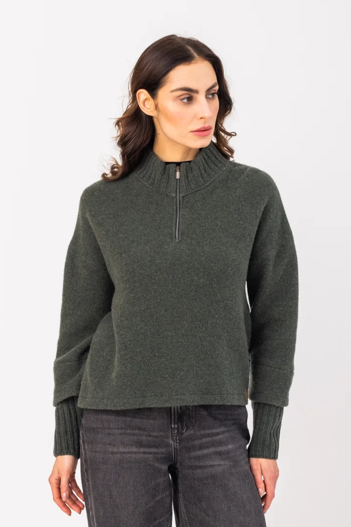 The comfortable Naomi sweater is made from a lambswool and cotton blend, making it the ideal companion for cooler days. With its lambswool knit cuffs and zip-up turtleneck collar, Naomi also looks casual and modern and can be wonderfully combined with a wide variety of styles. The sweater is knitted and milled in the Tyrolean Alps here in Wörgl!