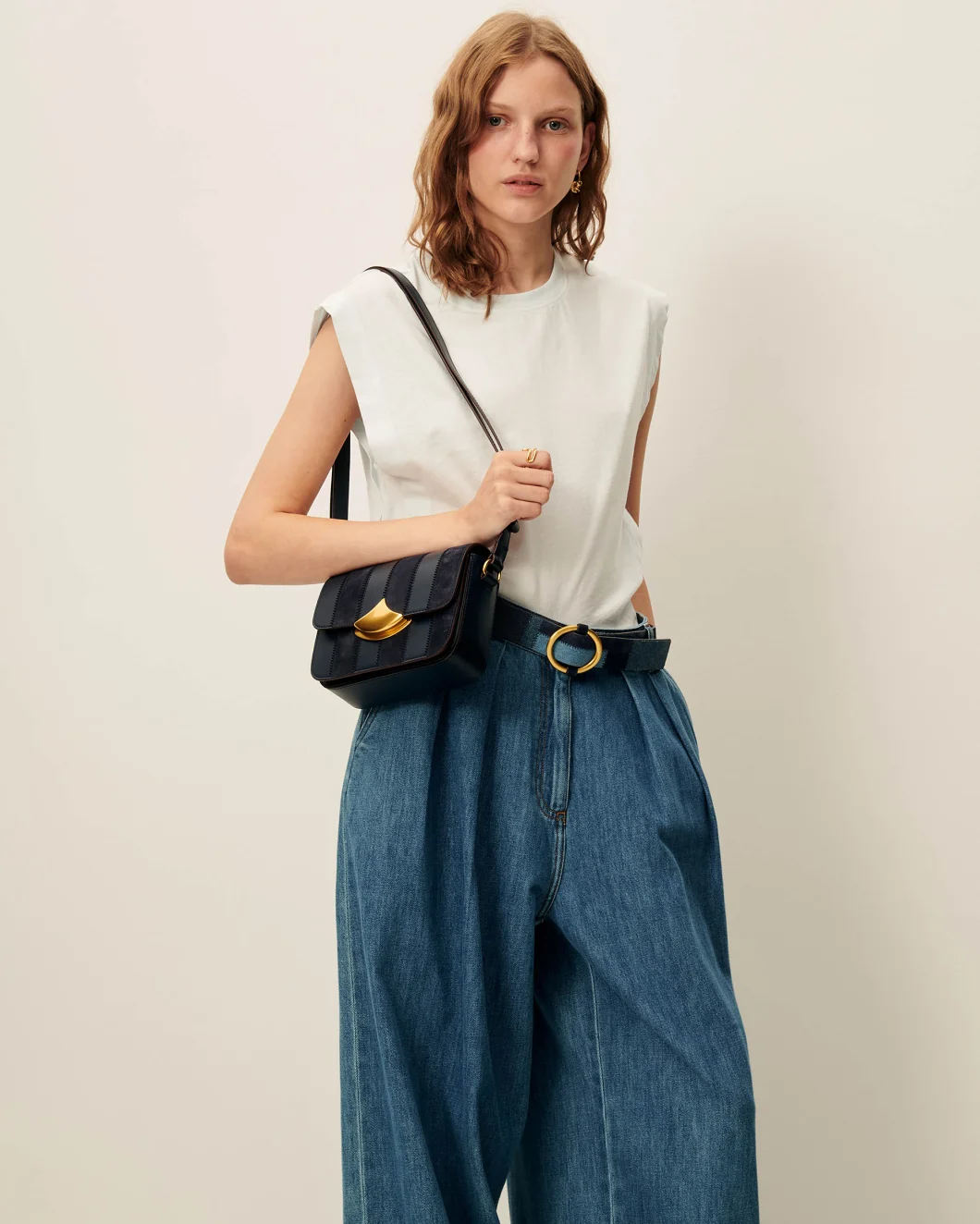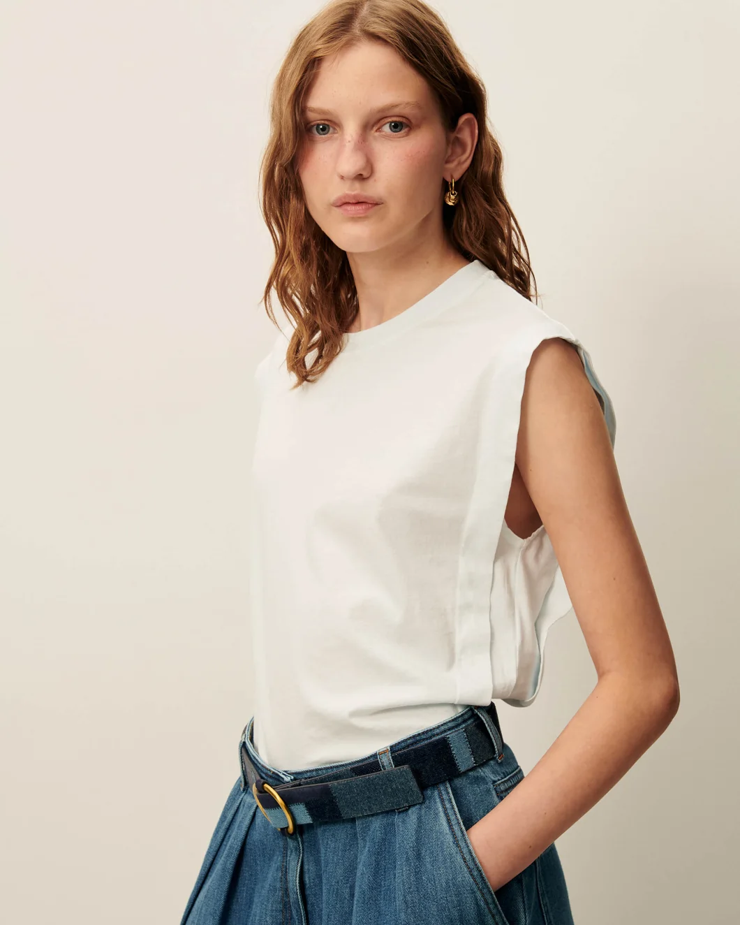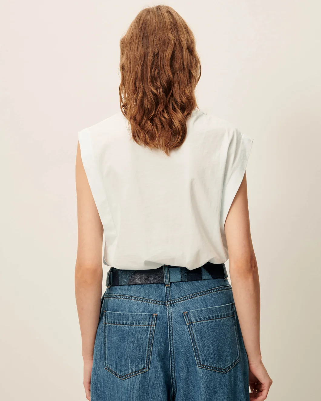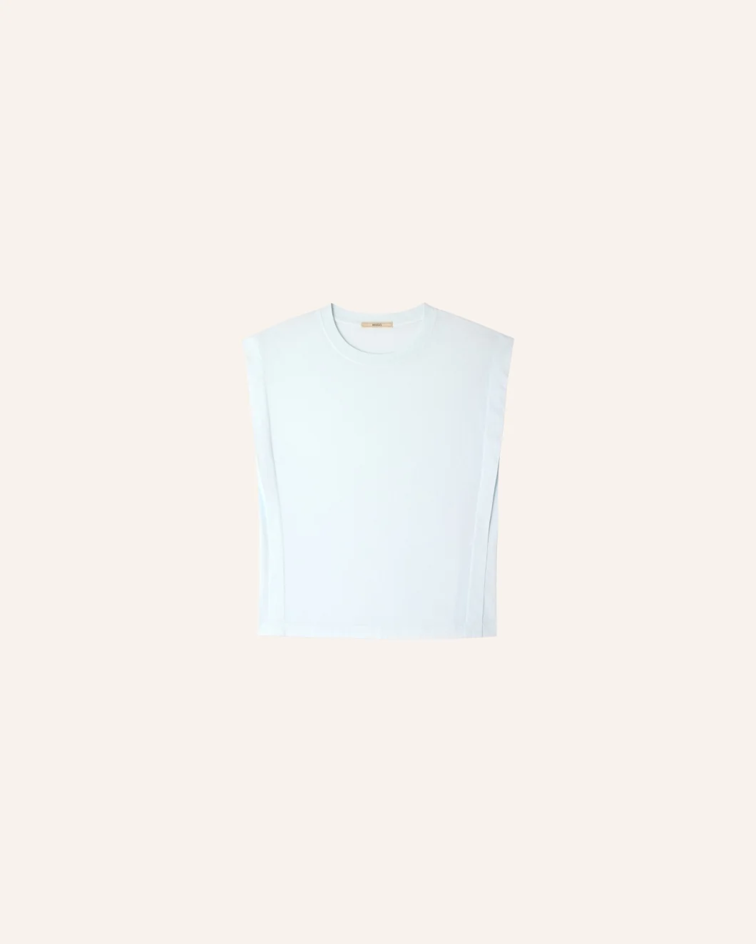 Sleeveless pleated T-shirt in pigment-dyed jersey, hand-crafted and dyed in Portugal.