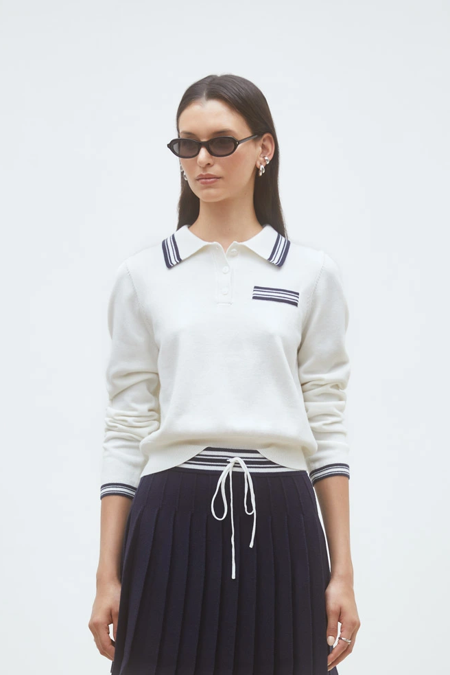 -Striped details on the collar, chest pocket and at the bottom sleeves
