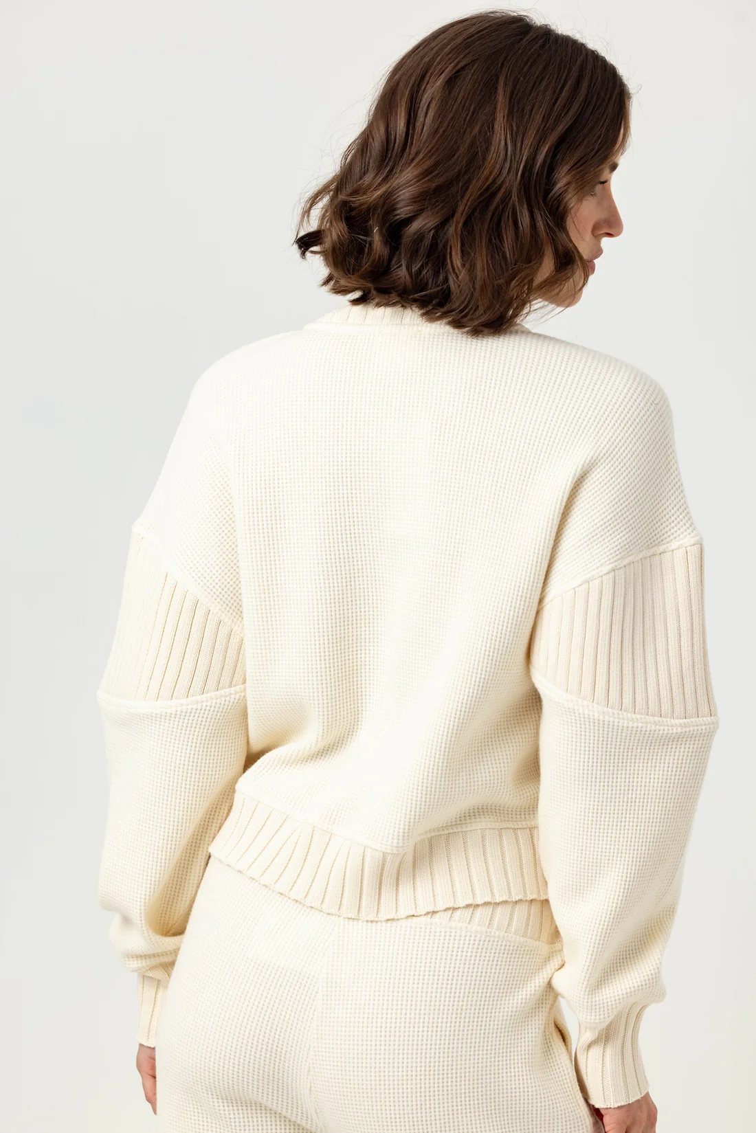 Made from lux thermal mixed with sweater rib, a relaxed fit through the body and oversized by design.
