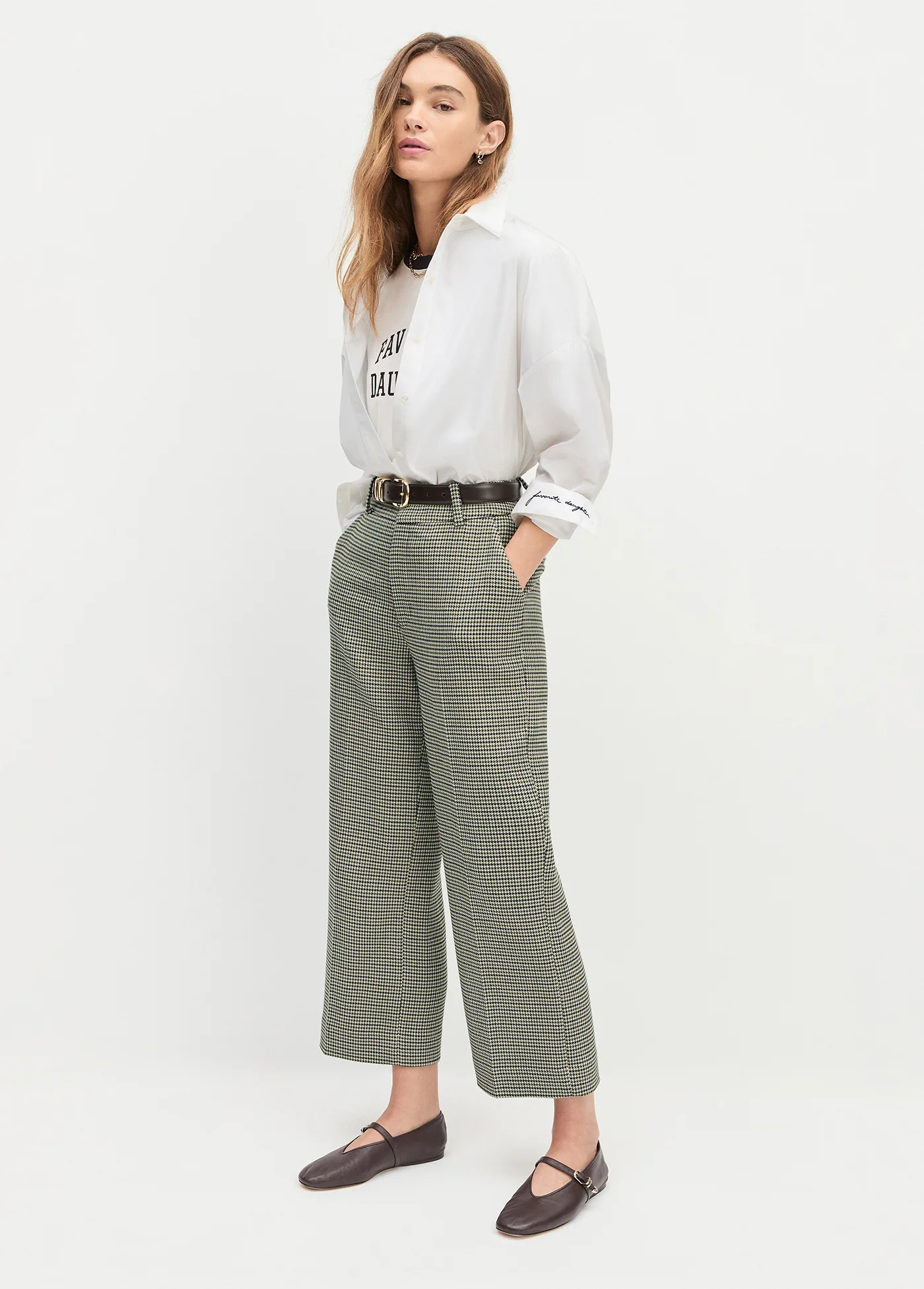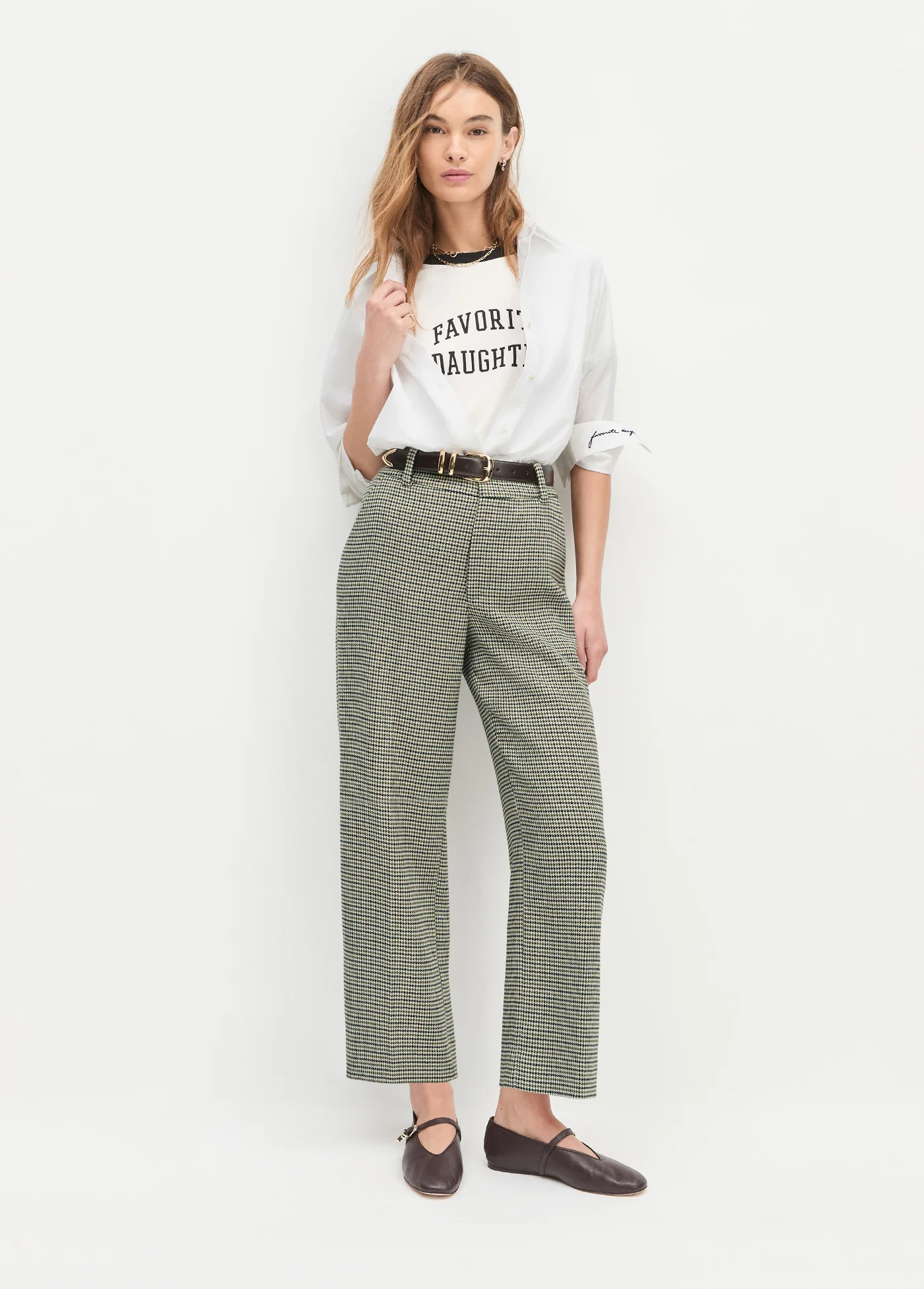 The Cropped Fiona Pant is a flat-front trouser inspired by our best-selling Favorite Pant. With a 11.75" high waist and cropped 27" inseam, these relaxed fit trousers are cut from a classic houndstooth for a timeless look.