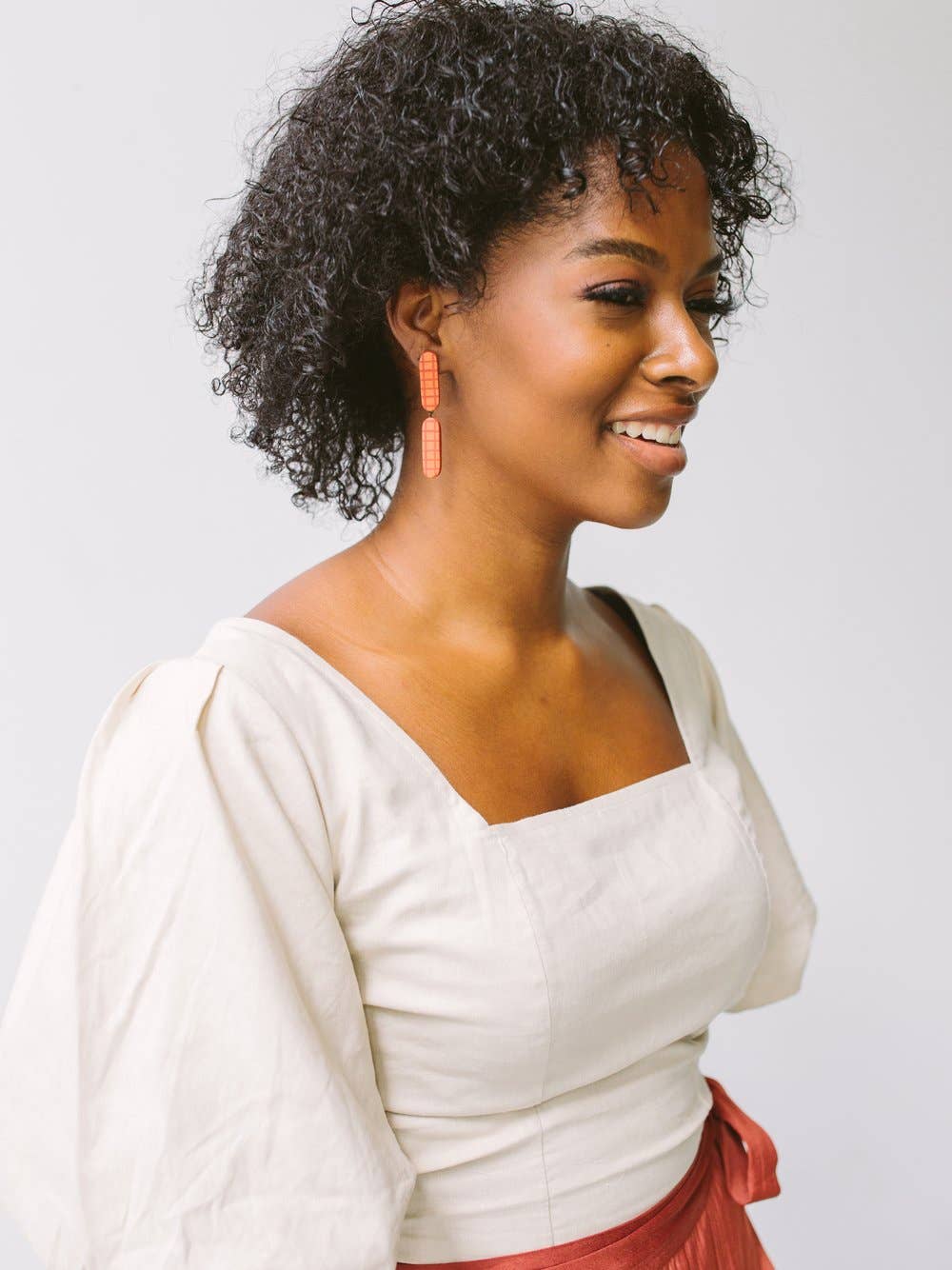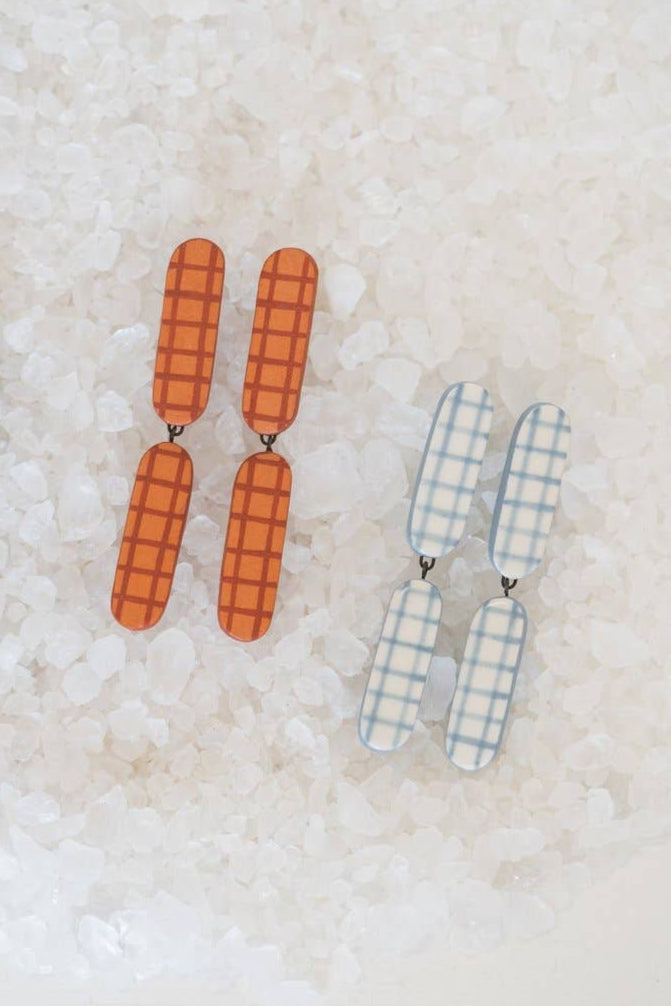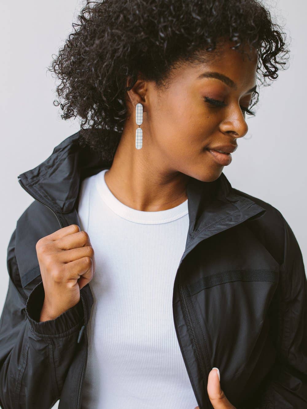 The Double Link Earrings bring double the tonal playfulness for the artful you! The modern design is brought together with classic pinstripes and monochromatic plaid glazes. Pair with your favorite jeans and classic tee for an artful touch!