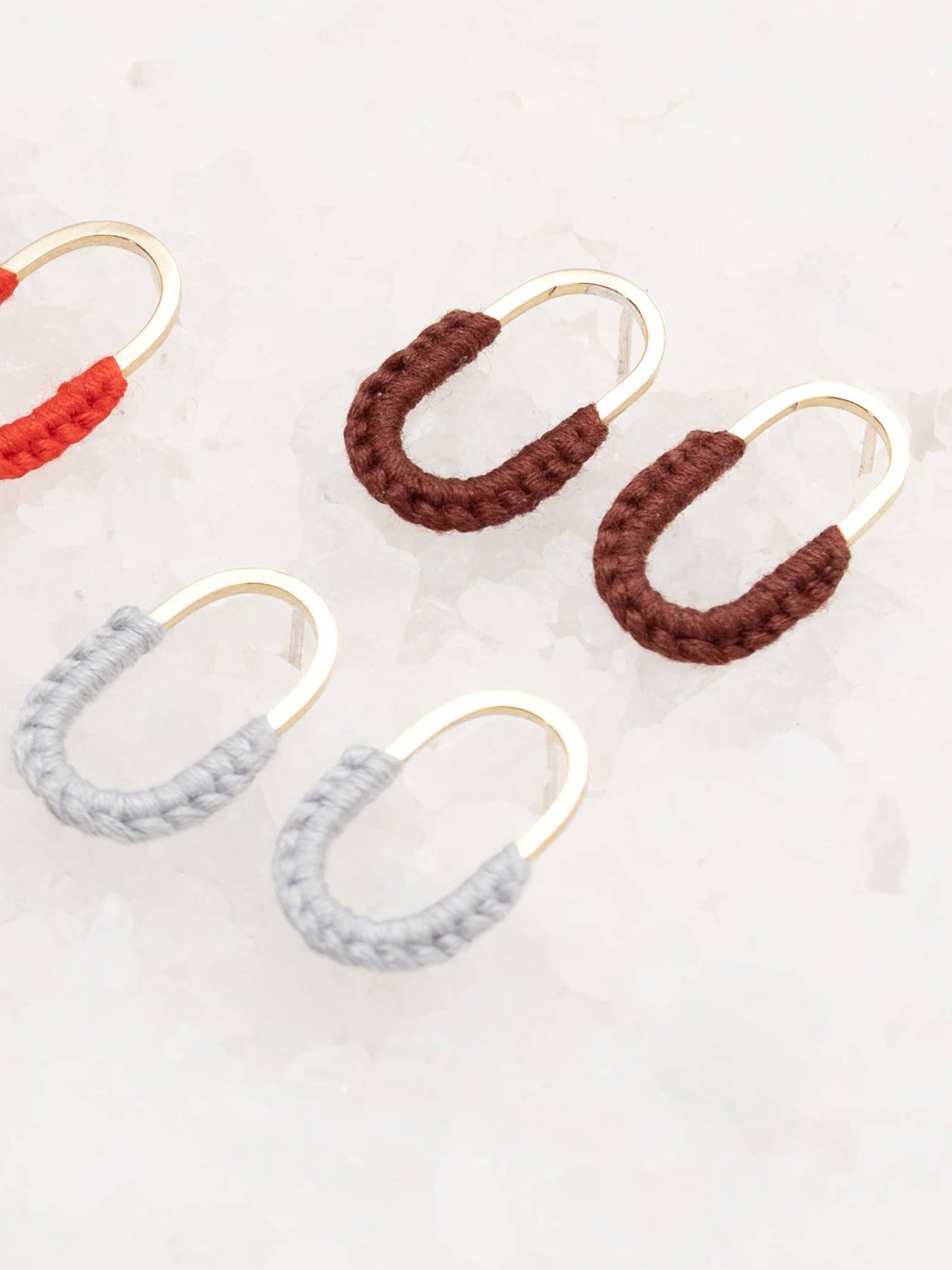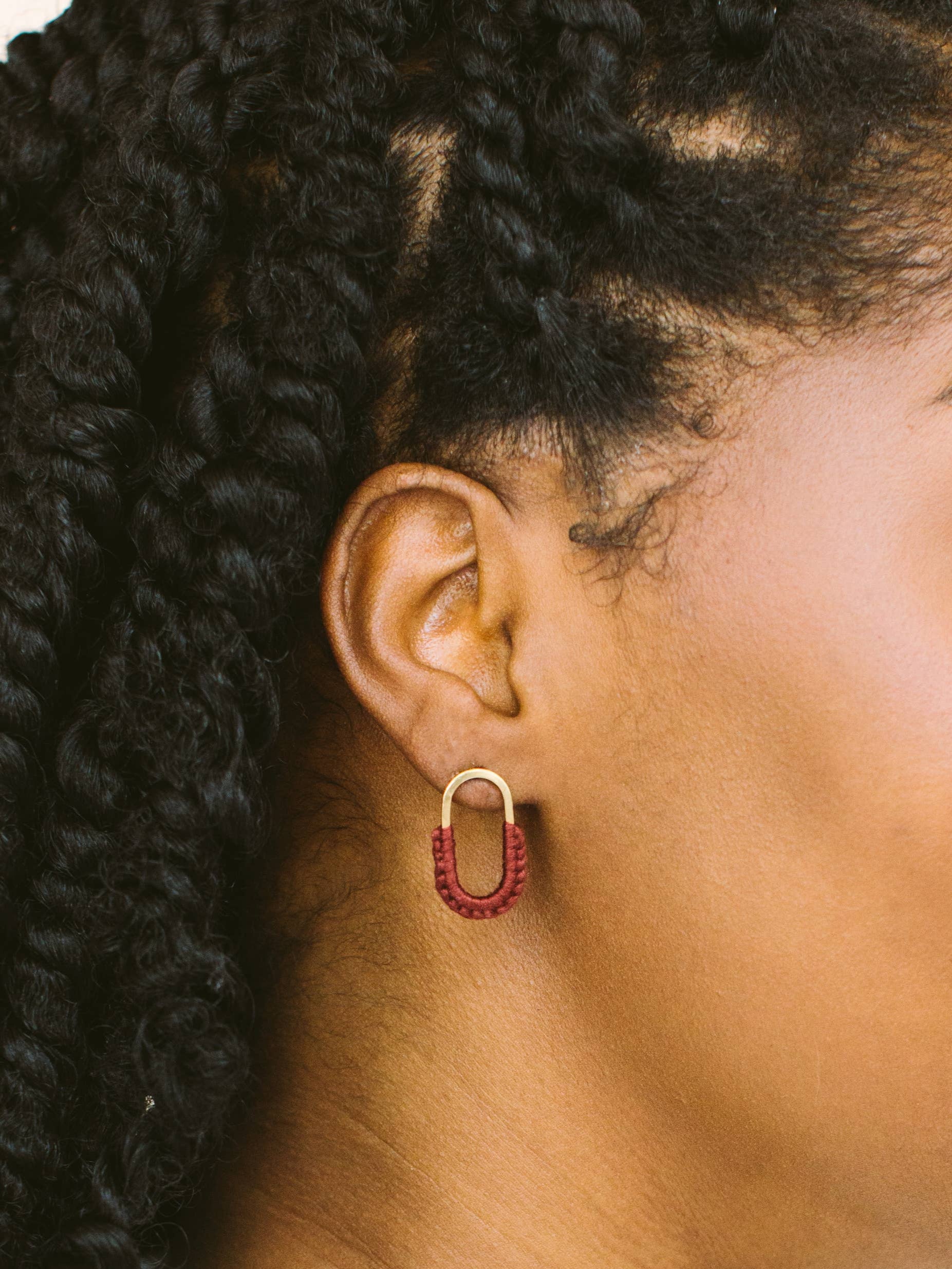 Introducing our Mini Macramé Link Earrings—a dainty, studded take on our beloved Macramé Hoops. These delicate earrings feature the same intricate hand-tied macramé knots that made the original design a fan favorite, but on a hand-formed link. Available in this season's top shades, the Mini Macramé Link Earrings offer an artful touch to your everyday look.