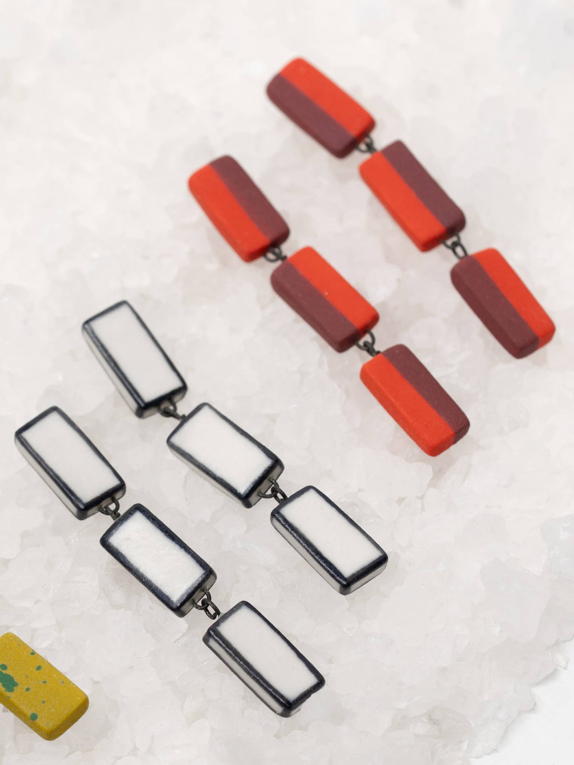 If you've seen Mary around the shop recently, you've most likely seen her rocking the Runaway At Last Earrings. These stacked block earrings bring a modern silhouette, clean line, and bold contrast to any wardrobe.