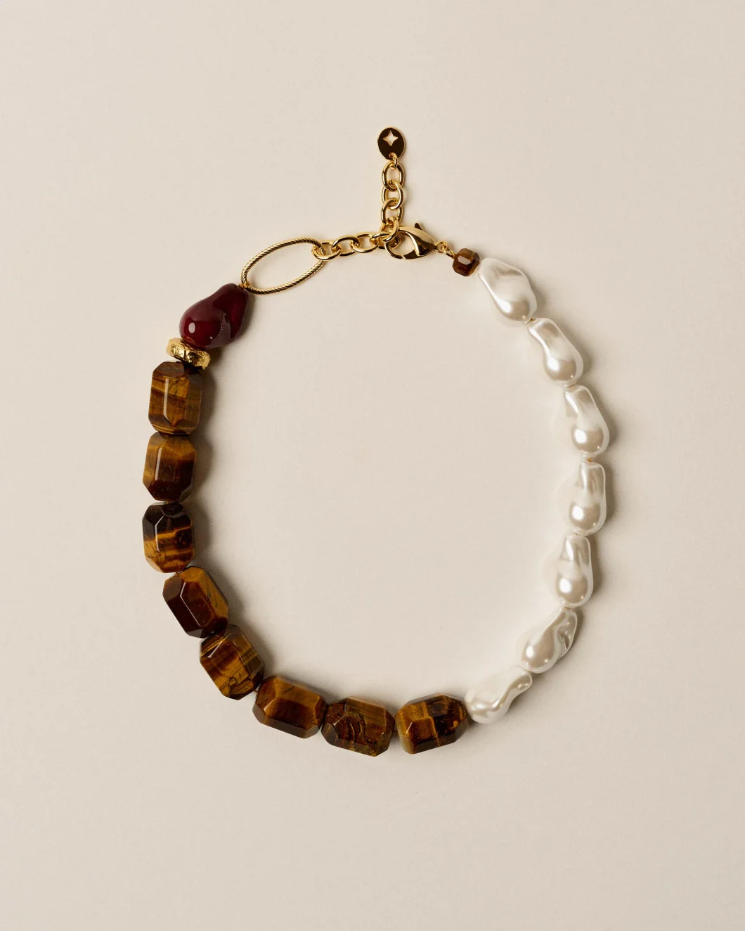 50% gold-filled brass 25% tiger eye quartz 25% resin